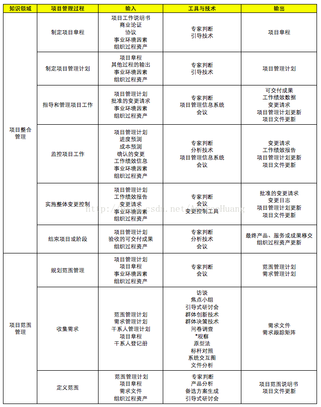 1.1 ITTO(输入、工具与技术及输出)汇总表