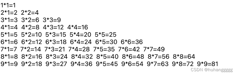 以上就是虚幻小猫咪最近收集整理的关于嵌套循环1(99乘法表)的全部内容,更多相关嵌套循环1(99乘法表)内容请搜索靠谱客的其他文章。
