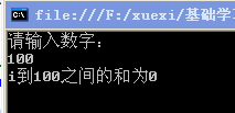 Console.WriteLine("i到100之间的和为{0}", sum);