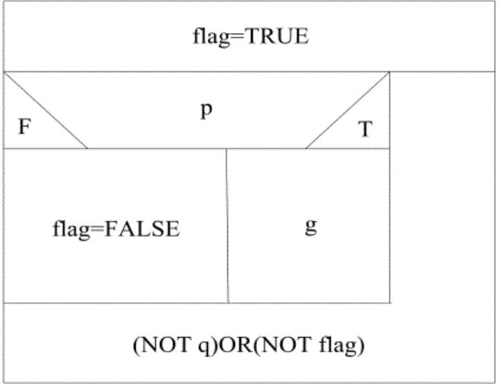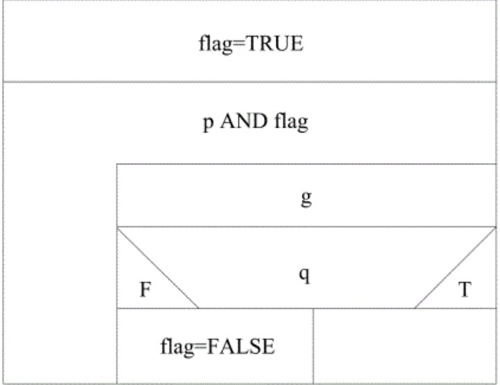 (2)使用附加的标志变量flag,至少有两种方法可以把该程序改造为等价的结构化程序,下图描绘了等价的结构化程序的盒图。