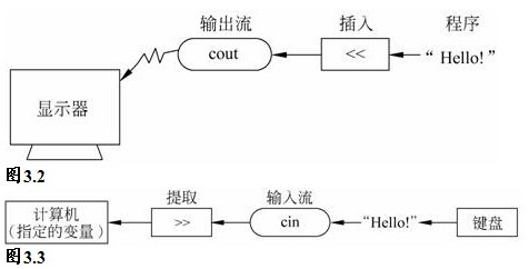 C++的输出和输入是用“流”(stream)的方式实现的。图3.2和图3.3表示C++通过流进行输入输出的过程。