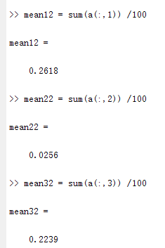 由于生成的是3*100的矩阵,按列考虑求平均很明显不足以说明均值情况。