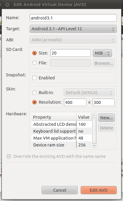 但是如果你就这么运行,我可以担保你很可能会失败。因为android 3.1 确实太费资源了。你可能会看到模拟器显示一个android标志之后,就停滞不前了。