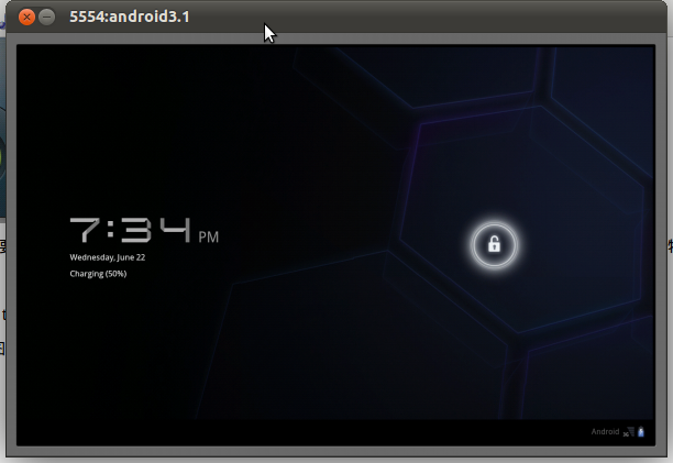 当然还有个问题,模拟器会启动到开机界面,然后就不动了,可能没用过android的朋友这儿会遇到一点困惑,用过的当然就明白该怎么做了,如下图: