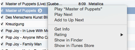 所以,在你右键删除iTunes歌曲列表的时候,会有一个选项—在Finder中查看,然后你就可以直接——command+Delete删除源文件!