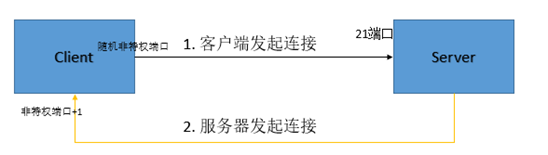 1. 客户端以随机非特权端口连接服务端的21端口
