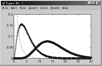 plot(x,yd_c,'b'), hold on %绘密度函数图形