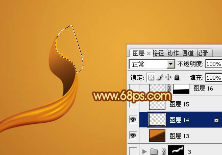 11、在当前组下面新建一个组,开始制作第二段。用钢笔勾出轮廓,转为选区后给组添加图层蒙版,如下图。