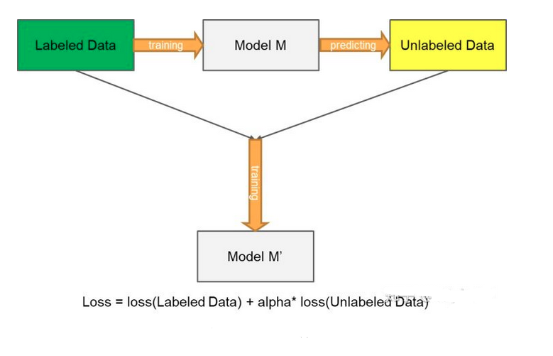 3. 将模型损失函数改为Loss = loss(labeled_data) + alpha*loss(unlabeled_data)