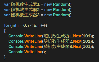可以看到,这三个随机数生成器在每一次生成的值都是一样的