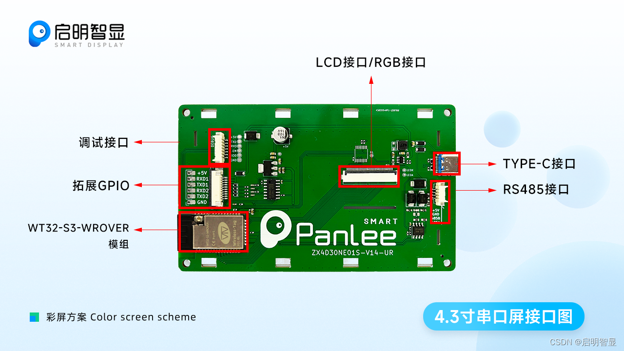 4.3寸串口屏基于ESP32-S3与国产芯高效开发平台8ms设计开发,现已顺利通过EMCEMI认证,集成了WIFI、蓝牙、RS485、串口等通讯方式,用户只需调用UI SDK及应用程序SDK即可实现快速开发。