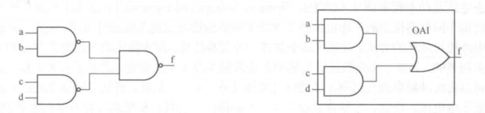 对于电路中的信号a,重新映射之前要驱动两级的与非门,在重新映射之后,只需要驱动一级优化的逻辑门AOI,显然降低了系统的动态功耗。下图所示为重新映射前后的两个电路模块。