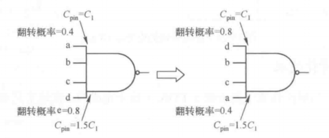 电路中b信号是翻转率比较大的信号,在排序前的电路中,b的每次翻转要驱动4个门,在排序后的电路中,b的每次翻转只需要驱动2个门,显然有效地降低了系统的动态功耗。下图所示为排序前后的两个电路模块。