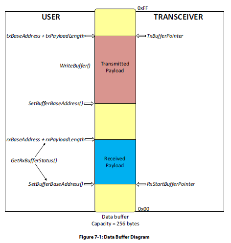 同时MCU也是通过“命令”的方式,从LoRa内部data buffer中读取数据,向LoRa内部data buffer中写入数据。