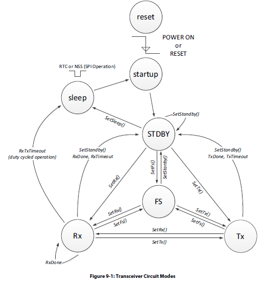 (1)如果需要通过LoRa空口接收和发送数据,必须从其他低功耗状态切换的Tx或Rx模式。