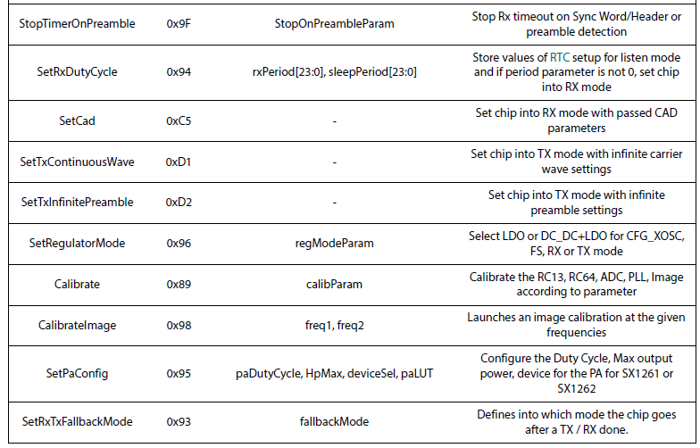 (1)配置芯片的操作模式或工作模式相关的命令(这是LoRa芯片提供给MCU方便地控制其行为的快捷的方式)