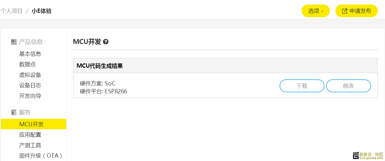 亮灭的应用,完整的体验了机智云提供的一些列简单方便的开发工具,尤其是代码自动生成工具,懒人福音。