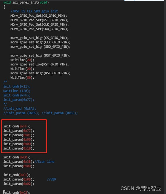 添加屏幕初始化数据(屏幕初始化数据跟屏厂获取):