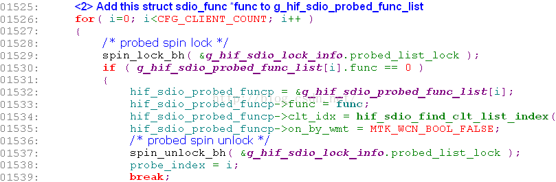 hif_sdio_probe函数:找到对应的sdio_func后,加入list表;使能该func,设置host与之通信时最大的数据传输buf。