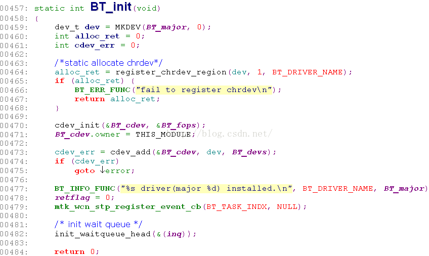 模块入口为:mediatekkerneldriverscombocommonlinuxpriwmt_dev.c