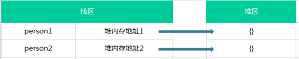 别忘了,引用类型时按引用访问的,换句话说就是比较两个对象的堆内存中的地址是否相同,那很明显,person1和person2在堆内存中地址是不同的: