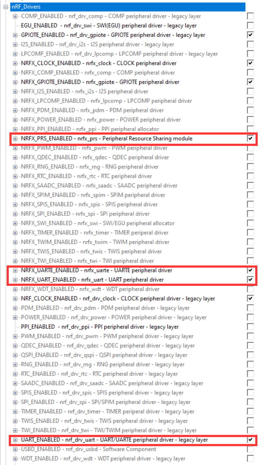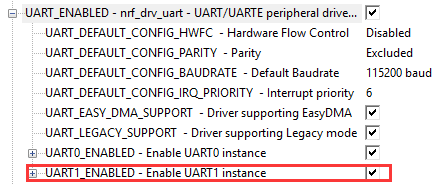 在 nRF_Drivers UART_ENABLED 上加上 UART1 使能