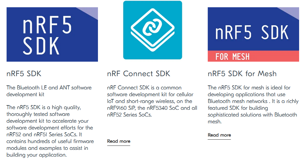 nordic官方已经提供了很多版本,面向不同应用场景的SDK包,一般参考SDK包的例程来进行开发和配置是非常效率的。