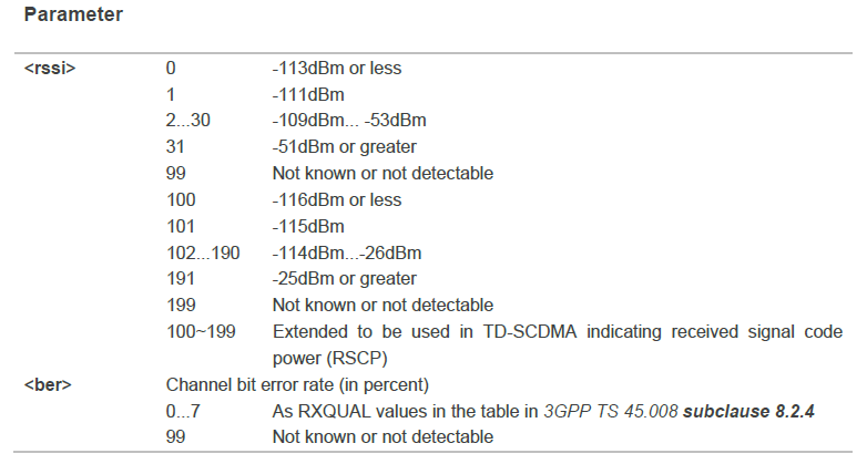 - AT+CSQ 信号质量报告
