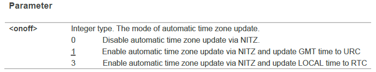 - AT+CTZU 自动时区更新