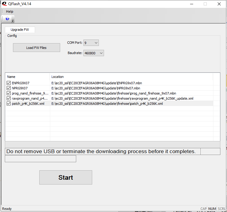 使用移远 QFlash_V4.14 工具升级移远 EC20 4G模块固件