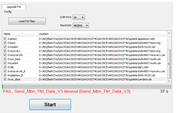 固件升级过程中若出现如下所示的错误提示,则产生错误的原因为串口选择错误,重新选择 USB DM port 做固件升级