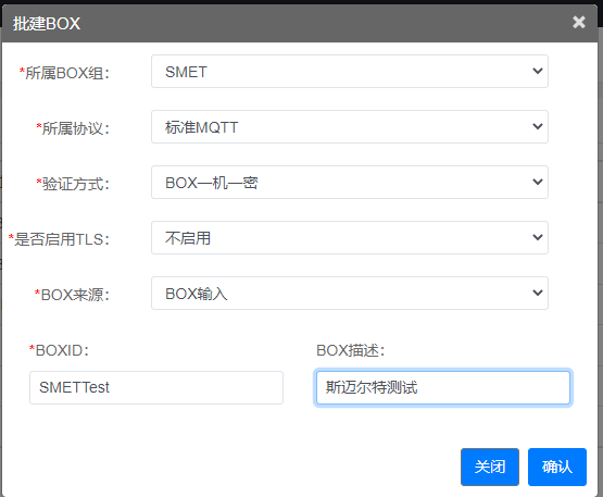 注意,BOX来源,需要选box输入,不然,BOXID会是很长的组合,不利于设备接入。