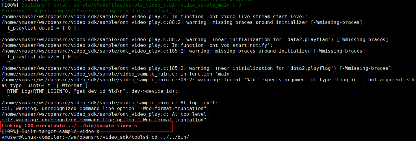 六、编译成功之后会在bin文件夹里生成sample_video_s和config.json