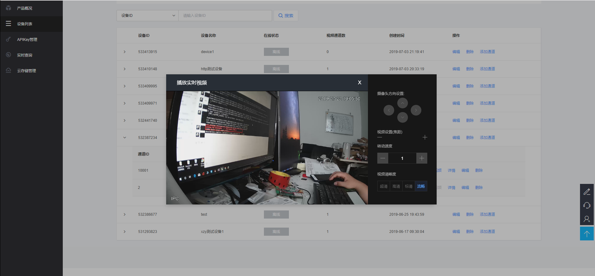 十、点击实时视频,最后大功告成,测试了大华摄像头和普通带云台摄像头,onenet可以支持云台操作!