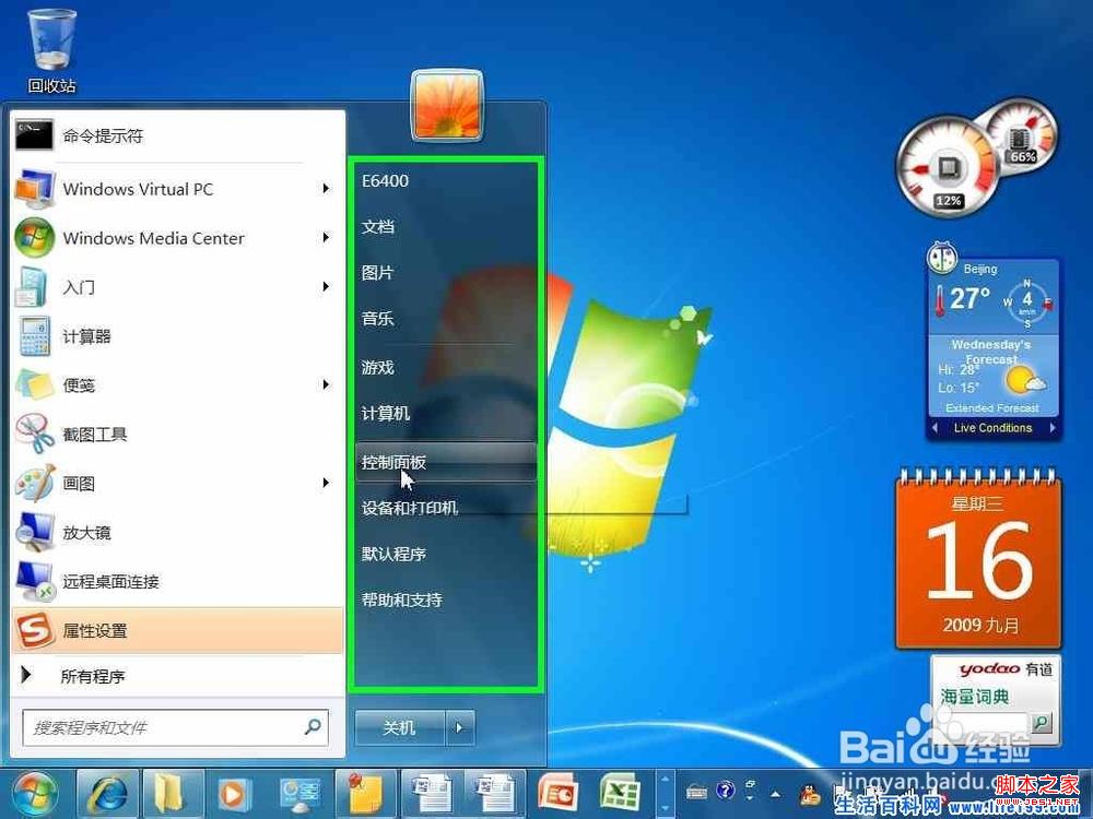 待安装更新结束之后,我们可以切换我们的界面语言了。打开开始,选择控制面板
