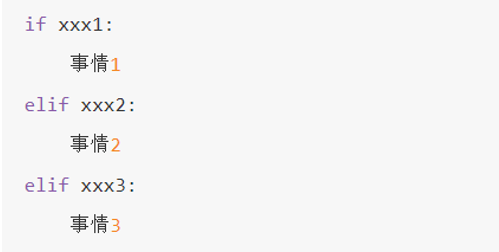 说明: 当xxx1满足时,执行事情1,然后整个if结束 当xxx1不满足时,那么判断xxx2,如果xxx2满足,则执行事情2,然后整个if结束 当xxx1不满足时,xxx2也不满足,如果xxx3满足,则执行事情3,然后整个if结束
