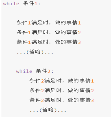 while循环嵌套: 类似if的嵌套,while嵌套就是while里面还有while