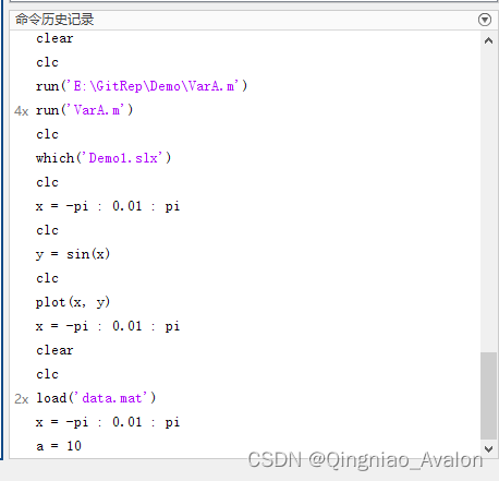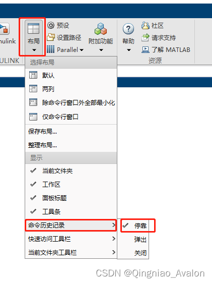 历史命令窗口可以选择停靠在Matlab窗口,默认不显示。