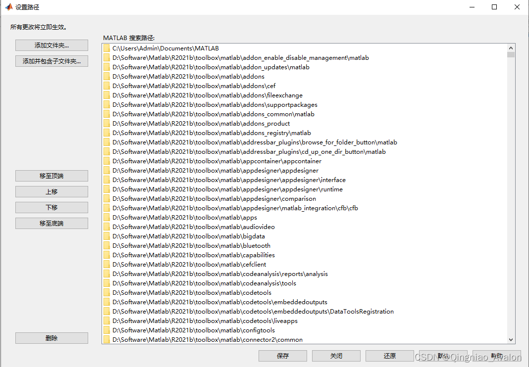 当然我们打开路径,可以看到Matlab安装后的文件夹有很多都在路径中了,那就是我们可以直接使用这些工具的原因。