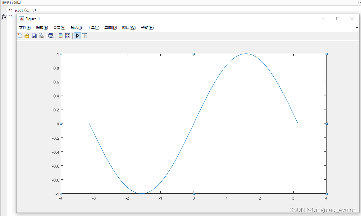 画图去显示sin函数从-pi到pi的图形
