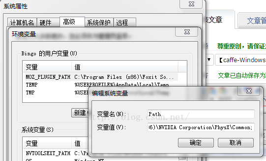 3,然后将release(如果你的caffe.sln是在Debug下生成的,就把Release换成Debug)加入系统变量path。
