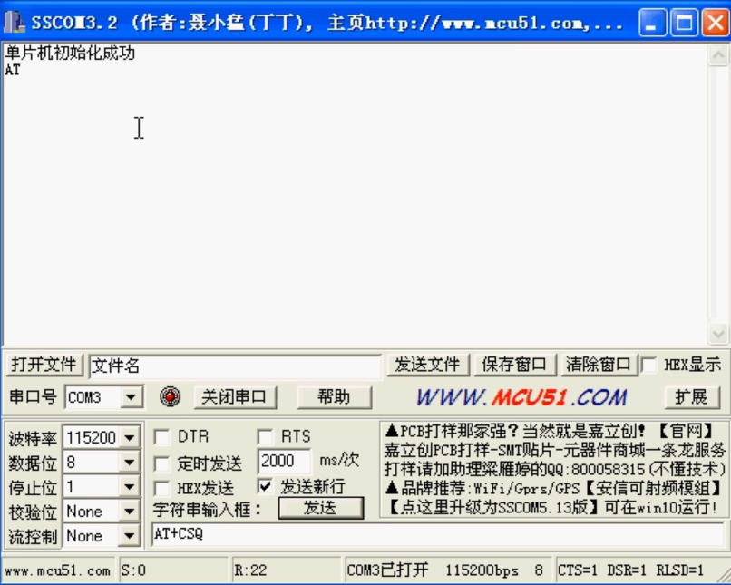 模块调试我们直接接到tiuctpl直接接到我们tdl电平,给他发送at命令,然后返回ok,比如说卡状态,信号质量ok的话, 我们模块就调试成功了,这个一定要去调试,不然的话,你的模块和单片机里面到底是什么状态,