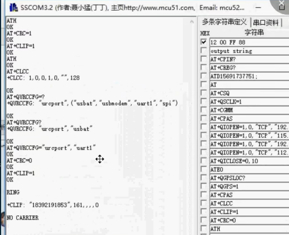 比如说我们打电话过去, 首先要看sim卡状态 和信号质量 拨号 拨通后串口没有反应,那usb有反应,所以我们需要把串口的功能通过命令进行配置,命令就可以把他转换过来,