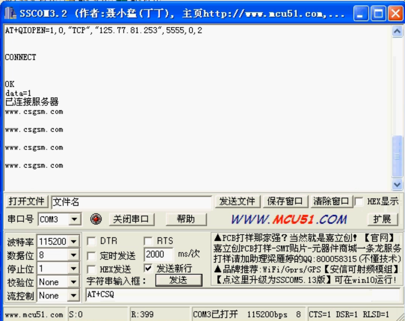 所有的模块都要看两件事情,一个是卡状态,一个是信号质量满格是31,AT+CREG? 注册状态 注册到基站,注册到基站之后模块与附近的基站进行连接进行