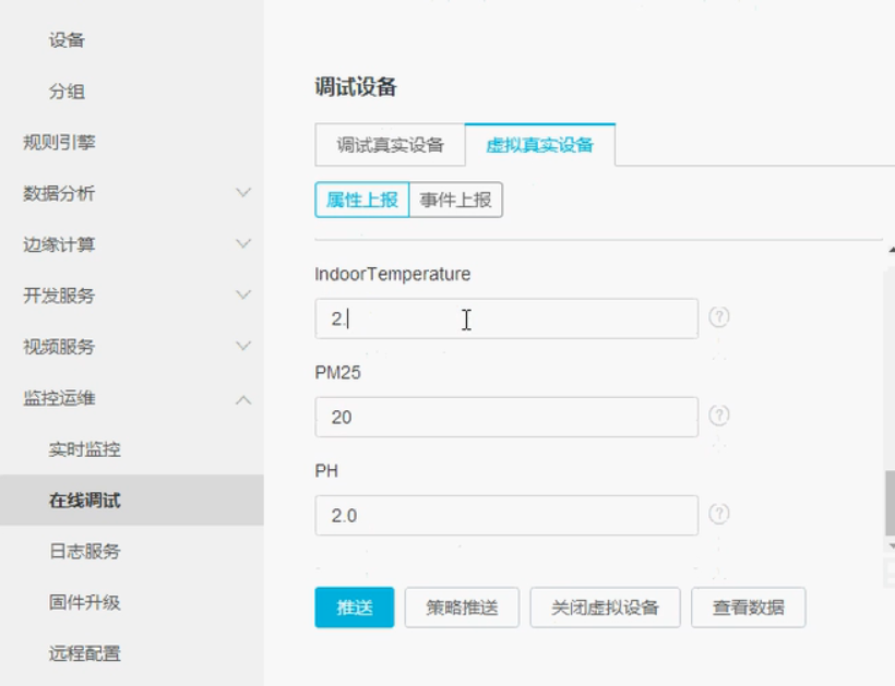 在线调试,刷一下 虚拟设备,数据看他能不能过去 float 2.0 int 发2