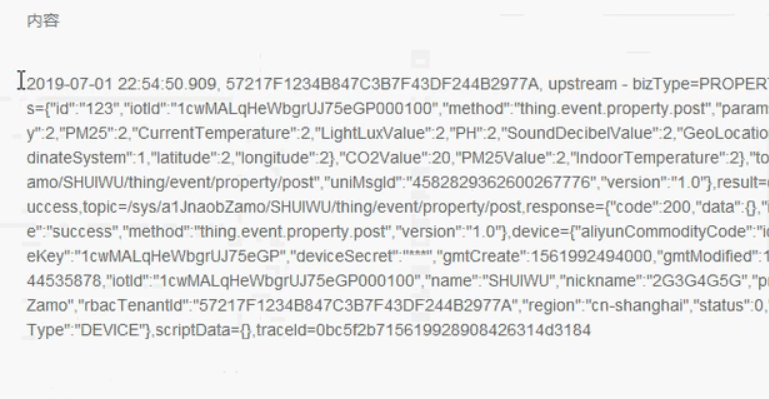 运行状态, 就可以看到我们刚刚发送的数据,这样的话表示我们这个测试,测试表示他是成功的,实时监控我们可以看到这个数据, 日志服务里面可以看到刚刚下发的数据