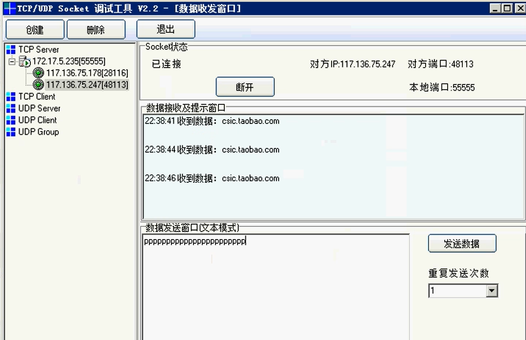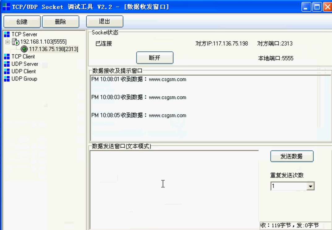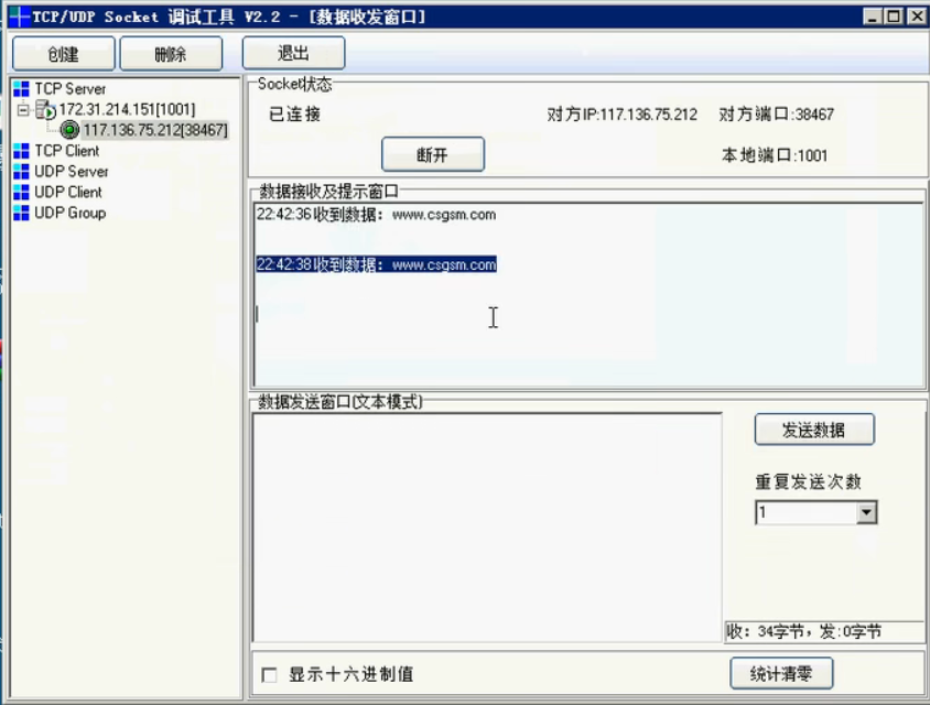 这个时候再次复位一下,这个时候服务器连上了,数据就一直发过来