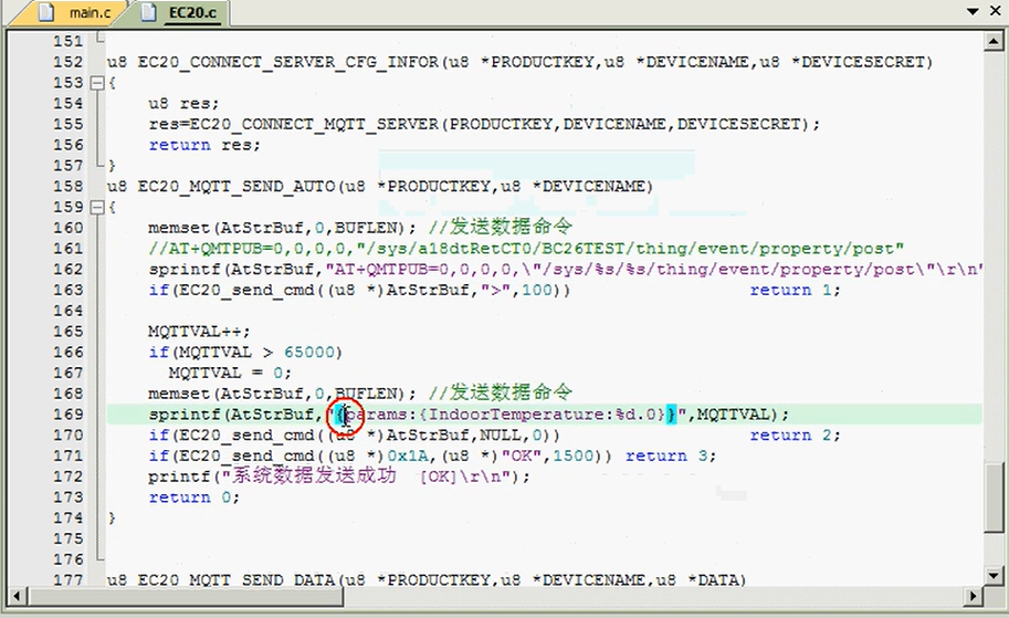 发送室内温度IndoorTerpeTature,这个是产品里功能定义有一个IndoorTerpeTature 是一个标识符,