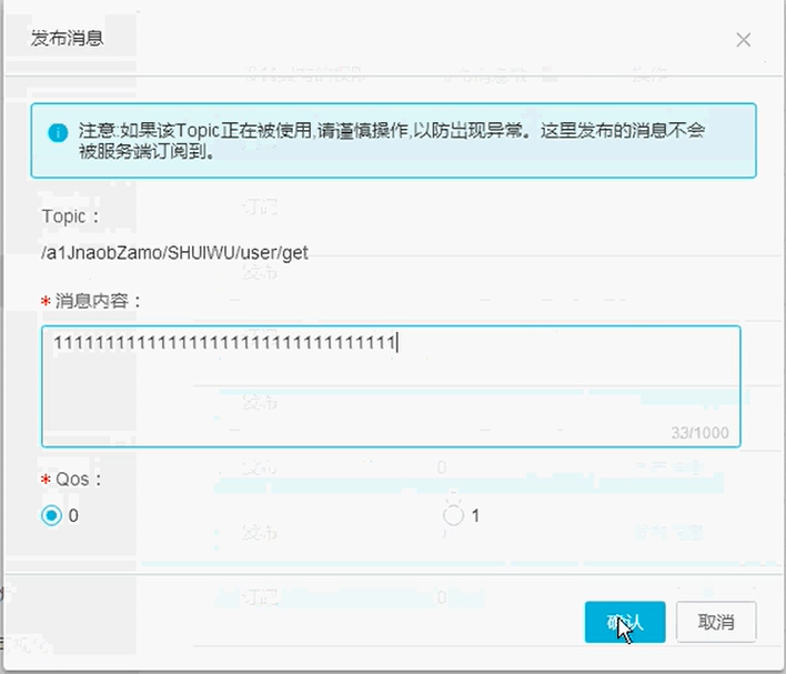 订阅完 比如上面有数据的话呢, 就会发下来,订阅的话,我们先配置一个id,msgID topic 然后是否有qos1或0,那么我们在代码里面可以看到qos 是0 %s/ %s/user/get 是topic列表,第一个是id 0, 1是msgID, 我们通过topic列表可以下发数据