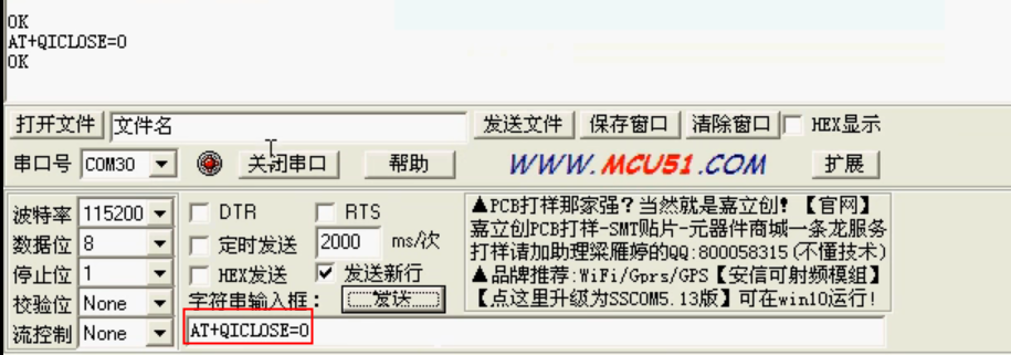 AT+QICLOSE=O 表明是要关闭通道,比如说我们之前有过一个连接我们要对他进行关闭 关闭我们的通道,比如通道0 我们就关闭通道0 他的状态 不然的话,下次你再连接的时候就会失败,